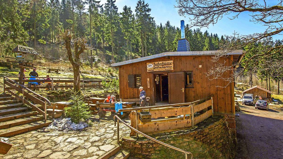 Die Jahnhütte an der Neuhöfer Wiese, am Rennsteig nahe Rotterode, wird in diesem Jahr 90 Jahre alt. Am Samstag gibt es Bratwurst, Bier und Blasmusik. Foto: Sascha Willms